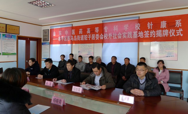 3月2日,针康系与养马岛街道驼子居委会举行了共建大学生社会实践基地揭牌仪式,学校团委书记宿世震、针康系党总支书记郑民、学生处学生科科长杨道杰、针康系团总支副书记王鑫等,驼子居委会包村干部孙序东、驼子村党支部书记林培让、村委委员林乐东、杨晓青等出席了签约揭牌仪式,针康系部分辅导员、学生代表及村民代表参加了仪式。仪式由林乐东主持。