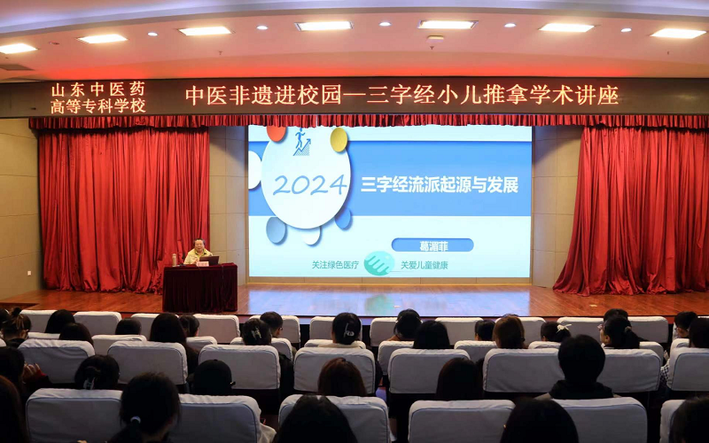 首先申芳芳向葛湄菲的到来表示欢迎和感谢,三字经流派小儿推拿是中华传统医学的瑰宝,通过举办本次活动,能够推动小儿推拿的传承和发展。葛湄菲在致辞中表示传承班不仅要传承三字经小儿推拿技能,更是传承中华民族优秀文化,以关注绿色医学,关爱儿童健康为宗旨,使更多的人了解小儿推拿的价值和意义。荆雪宁指出多年来学校一直致力于弘扬中医药文化,提升基层中医药服务能力,保障人民健康,牟平作为三字经小儿推拿的发源地,传承和弘扬小儿推拿是学校义不容辞的责任,希望同学们能够珍惜学习机会,将三字经小儿推拿的精髓传承下去,为人民群众的健康做出贡献。随后,葛湄菲围绕三字经流派小儿推拿的起源与发展作了精彩的讲座。
