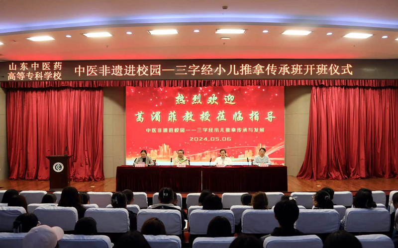 5月6日,三字经小儿推拿传承班在我校综合楼报告厅举行开班仪式,山东省非物质文化遗产“三字经流派推拿疗法”代表性传承人葛湄菲、副校长荆雪宁、针康系党总支书记徐迎涛、副主任申芳芳及相关教师学生参加会议,会议由申芳芳主持。