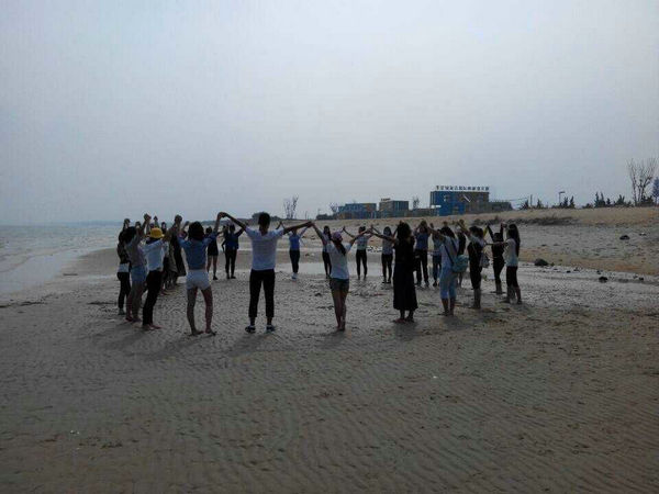 本次活动以徒步拉练为主要形式。带队教师和学生在学校集合,徒步拉练至里蹦岛;稍事休息和拓展活动后,再徒步返回学校。全程共计十公里,历时三小时。老师和同学们于7:50准时出发,途中,同学们自发组织拉歌,一路欢声笑语。到达目的地后,三个订单班——“容大”班、“美丽田园”班和“亿嘉琏店长”班的同学们组成若干小团队,开展各种形式的团队PK赛。