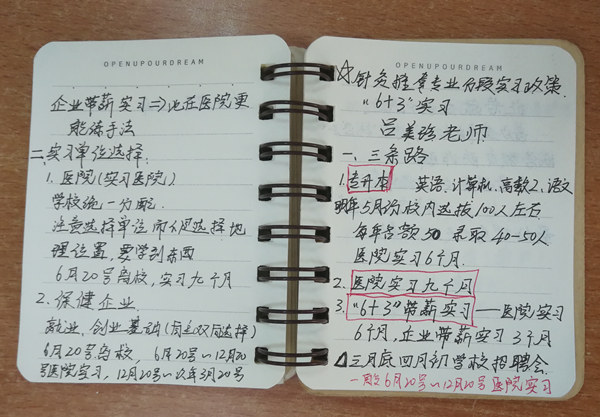 吕主任从国家政策、行业现状、“6+3”实习模式、实习单位四个方面结合多年运行以来的实际案例进行了宣讲,与会同学认真听讲、并通过拍照、记笔记等方式留下材料。