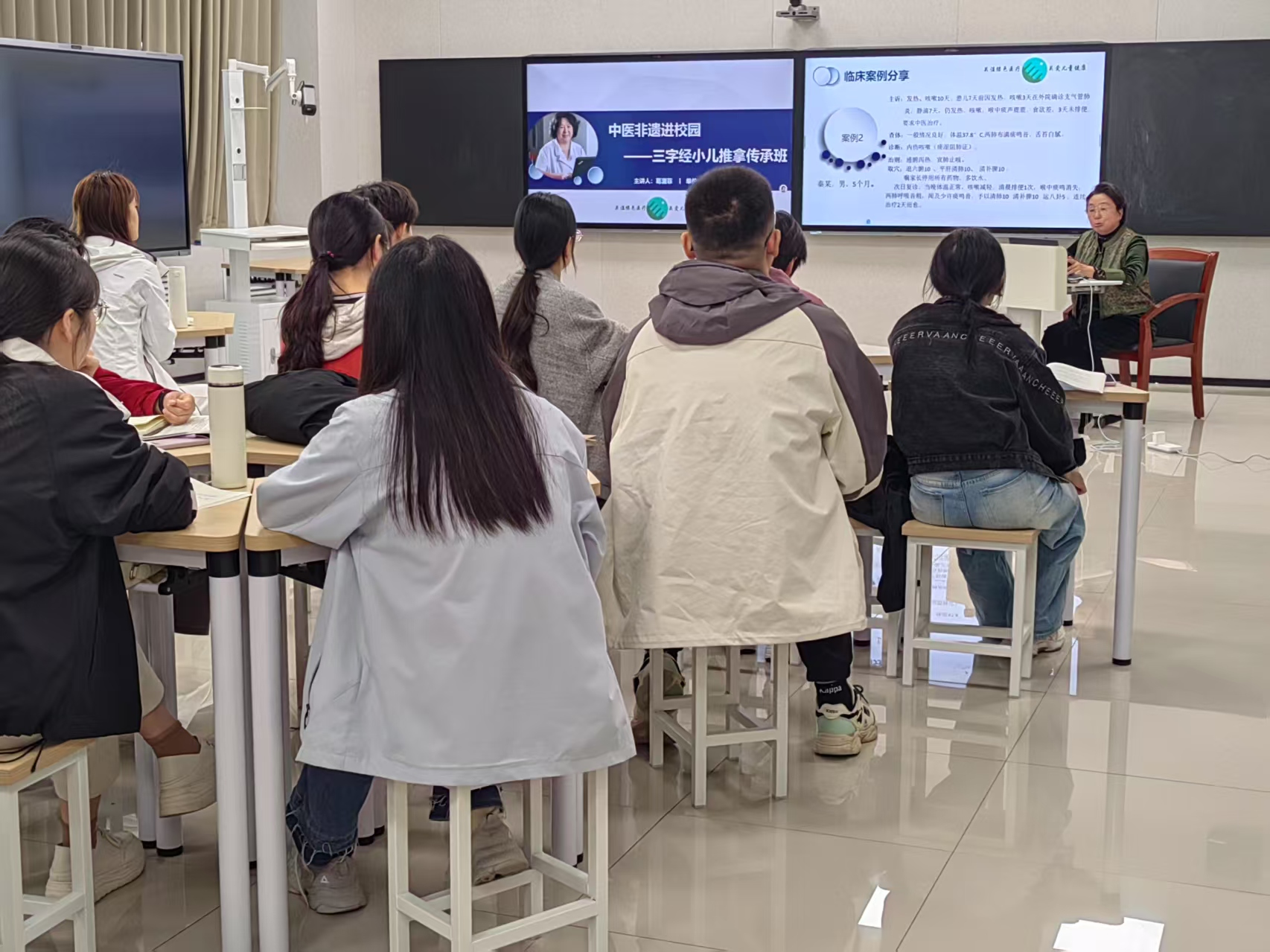 讲座中,葛湄菲以三字经流派诊疗特色为核心,结合儿童呼吸、消化系统疾病案例,系统阐释小儿推拿技法。通过融合中药方剂与食疗方案,她构建起“疾病前科普宣教、疾病中绿色治疗、疾病恢复期保健推拿与体质调理融一体的医疗服务模式”,凸显中医“治未病”思想在儿童健康领域的应用价值。互动环节聚焦推拿手法标准化、中西医协同等临床议题,葛湄菲以实践经验倡导传统技艺与现代医学的融合创新,启发师生探索非遗技艺活化路径,为绿色医疗发展拓宽实践维度。