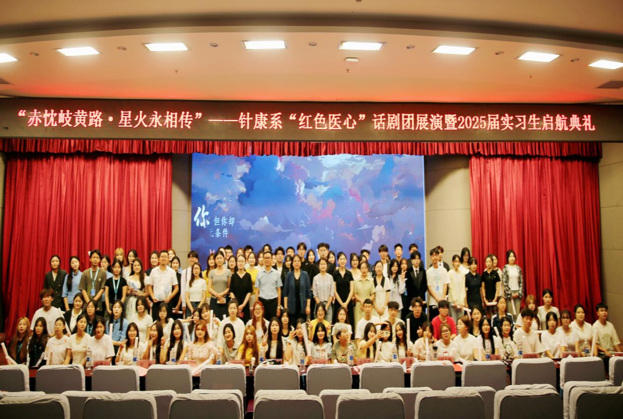 针康系“赤忱岐黄路星火永相传”红色医心话剧团展演暨2025届实习生启航典礼于6月6日在综合楼学术报告厅隆重举行。活动以精彩纷呈的三大篇章,深情回顾2023级学子的成长足迹,激昂吹响2025届实习生奔赴临床实践的号角,彰显了新时代针康学子传承红色基因、矢志岐黄事业的赤诚之心。
