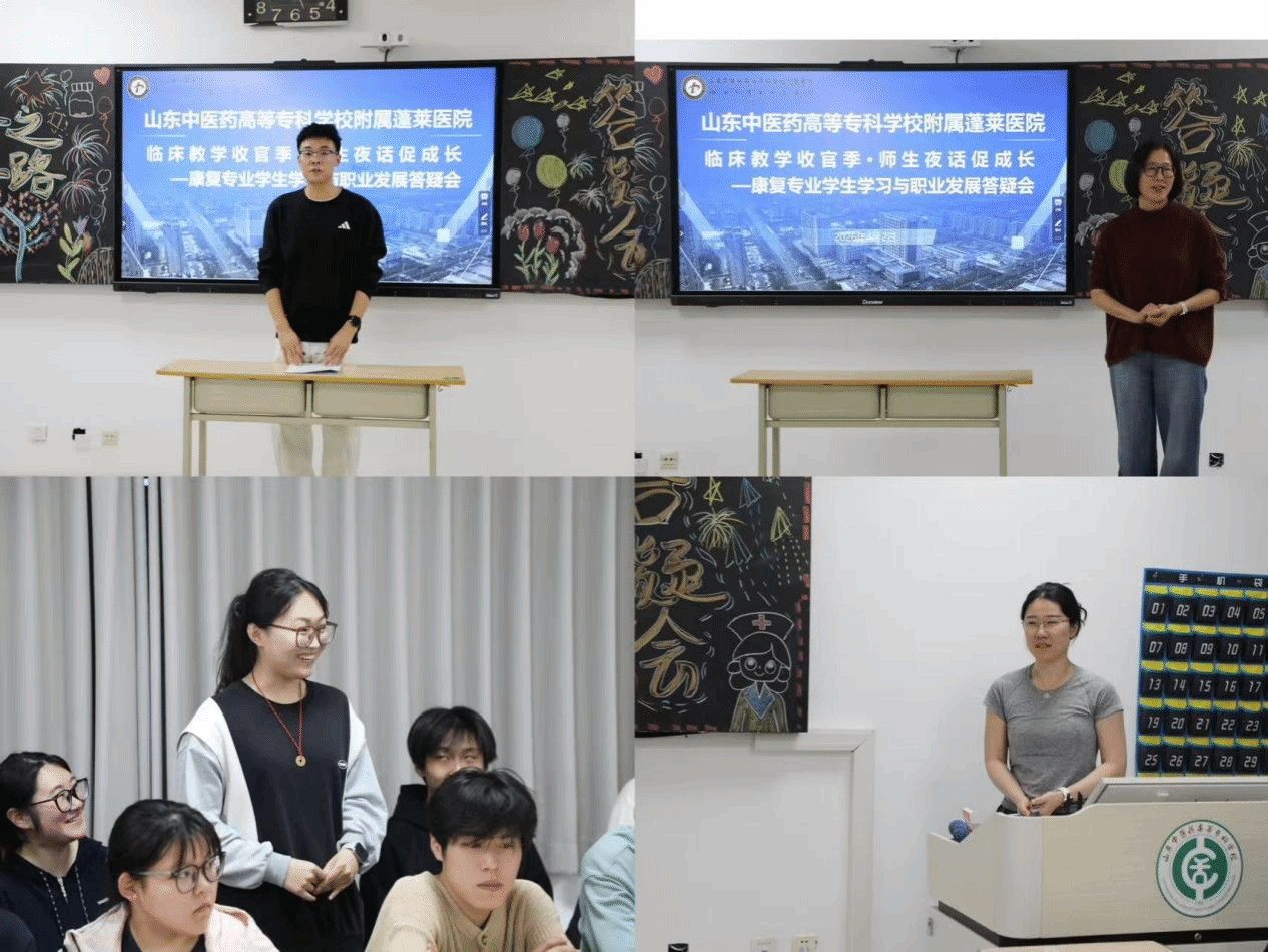 为进一步深化医教协同,明晰我校康复治疗技术专业临床教学阶段学生的职业发展方向,切实破解同学们在当下学习实践与未来就业发展中的困惑,4月2日晚,在附属蓬莱中医院康复科全体老师的大力支持下,2024级康复治疗技术02班组织开展了“临床教学收官季·师生夜话促成长”答疑活动。活动特别邀请了附属医院院领导、康复科临床骨干教师、科教科老师及学校专业课教师,围绕临床工作实际、岗位胜任力、职业规划等核心话题,开展专题分享与互动答疑,为学子们即将步入实习、就业阶段筑牢指引根基。
