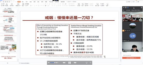 本次活动依托山东省针灸学重点学科平台,结合职教周工作部署,邀请了王莹莹教授线上讲授了“针刺戒烟临床疗效评价与方案研究”,并介绍了其团队在针刺戒烟方面的研究成果。随后,参会教师共同研讨了针刺戒烟研究的现实意义及科研设计思路,探讨了该研究方向与针灸学课程群课程思政建设的融合路径。