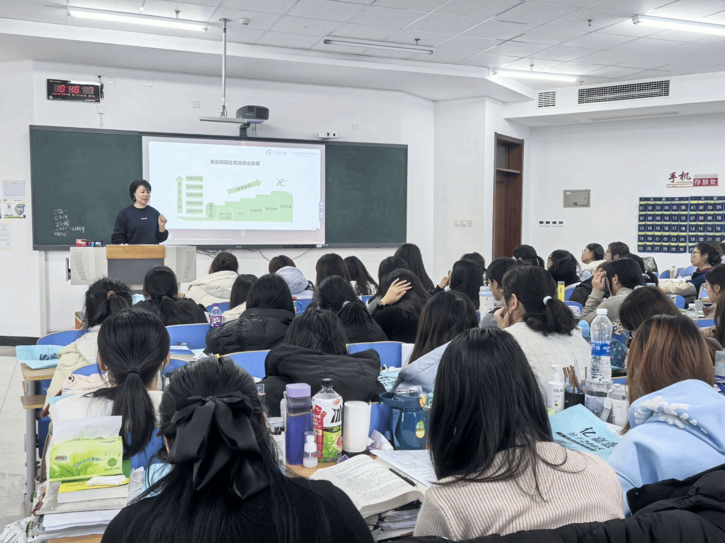 2025年12月20日,医学美容技术专业2025级校企合作订单班选拔活动在护理康养实验楼顺利开展。广州容大生物科技有限公司、青岛亿嘉琏集团、青岛美丽田园美容有限公司三家行业优质企业代表莅临现场,面向2025级专业学生开展选拔。