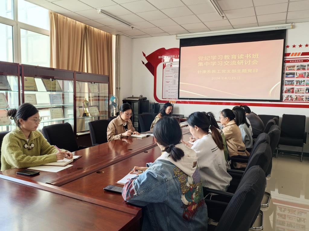 4月25日,针康系教工党支部在会议室开展了交流研讨形式的党纪学习教育主题党日活动,传达学习习近平总书记关于党纪学习教育的重要讲话、指示精神及上级和学校党委有关部署。针康系副主任、教工党支部书记申芳芳主持本次活动。