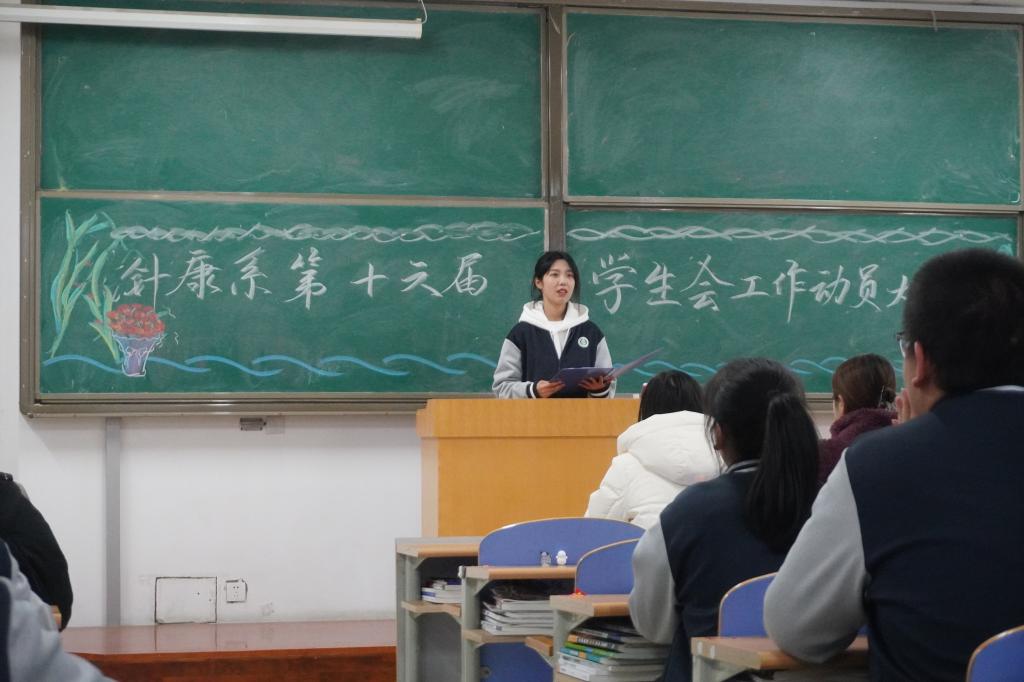 为进一步加强学生干部队伍建设,11月10日下午,针康系第十六届学生会工作动员大会在综合楼202举行。针康系党总支书记张琳琳、辅导员老师、学生会各部部长及学生会23级新成员参加会议。会议由窦守强主持。