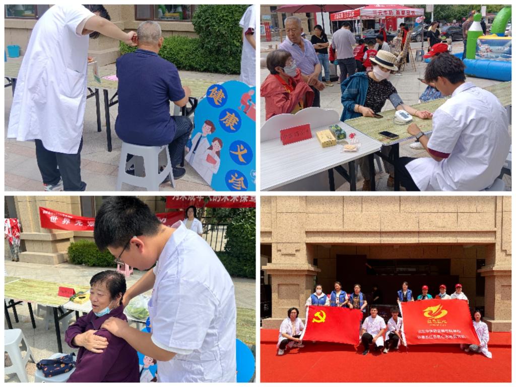 为充分发挥专业特色与人才优势,切实将共青团实践育人工作融入社区服务,引领广大团员青年主动作为、紧跟党走,6月2日,针康系红色医心志愿服务队来到金埠街社区参与由牟平区举办、社区党组织领办的“牟邻集市”启动仪式,以公益形式为社区民众提供健康义诊服务。