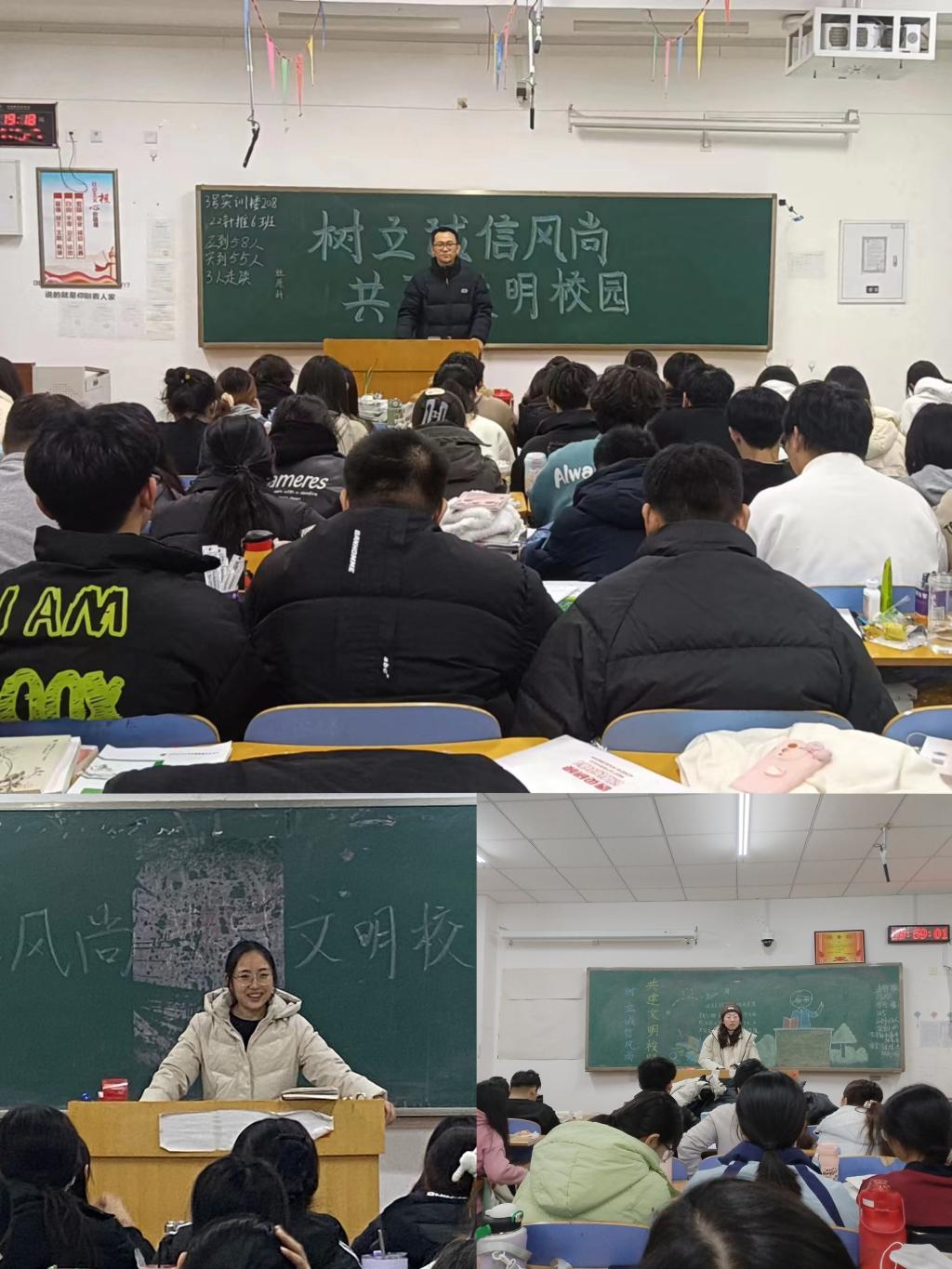 各班级辅导员在会上向同学们开展诚信思想教育,分析考试作弊的危害及后果,组织同学学习学校关于学生考试违纪、作弊认定及处理办法。并号召同学在诚信考试倡议书上签字,承诺在考试中严守考纪,诚信应考,以实际行动营造良好的考试氛围。