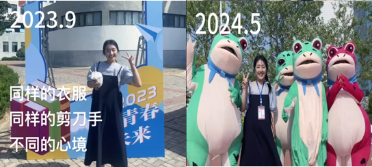 参与活动的同学们提交刚步入大学时与当下阶段的照片与视频,并配以简短的文字说明,通过前后对比分享自己的大学成长故事,体现流动的青春。自活动启动以来,同学们纷纷积极参与,这些照片、视频和文字不仅记录了他们在学业、生活、社交等方面的成长,更展现了他们对未来的美好憧憬和坚定信念。