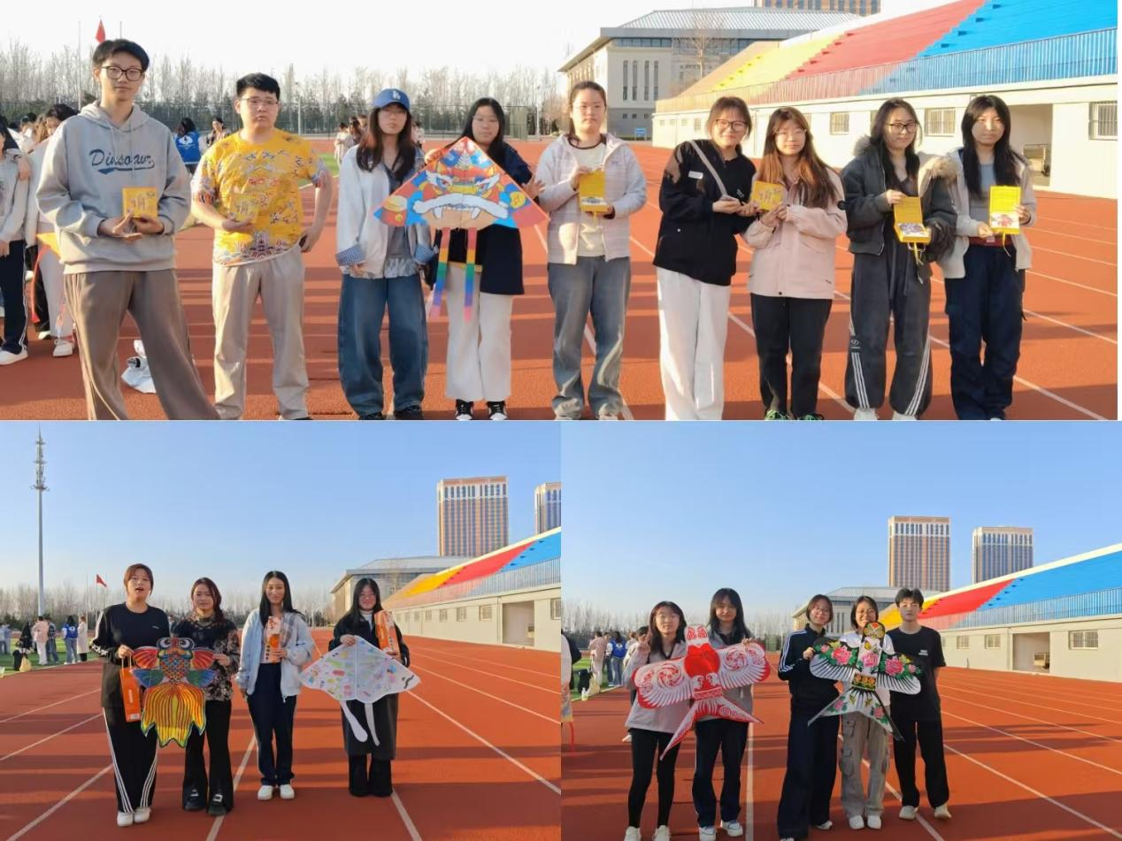 活动共分为两个环节。第一环节风筝制作评比:根据创意设计,工艺质量,材料运用等方面进行打分。第二环节风筝放飞活动:根据起飞、留空时间、飞行姿态、飞行高度等方面综合评价。现场气氛活跃,同学们沉浸在欢乐的活动中,身心得到了充分放松。最终24针一左行等同学凭借出色表现获得本次活动一等奖,24针五王玉珍等同学获得二等奖,24针二王杰舜等同学获得三等奖,24康二刘哲等同学获得优秀奖。