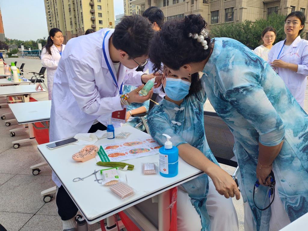 活动期间,前来就诊的群众络绎不绝,坐诊志愿者学以致用,根据就诊人员的身体状况有针对性地为其提供测量血压、推拿、刮痧、艾灸、耳穴压豆等多种特色中医疗法,并为群众讲解中医保健常识、提供诊疗建议,使广大群众亲身感受到中医理疗的独特魅力。学生在义诊过程中能够准确定位各个穴位、力度适中、手法正确、耐心细致,展现出较高的专业素养,受到在场群众的一致好评。在参与义诊的过程中,志愿者们切身体会到社区义诊活动或许不仅仅是提供医疗保健服务,更是赋予一份关爱和陪伴,通过回应居民的健康需求,使居民感受到被关注和被尊重,有利于增强居民对社区医疗服务的信任和依赖。