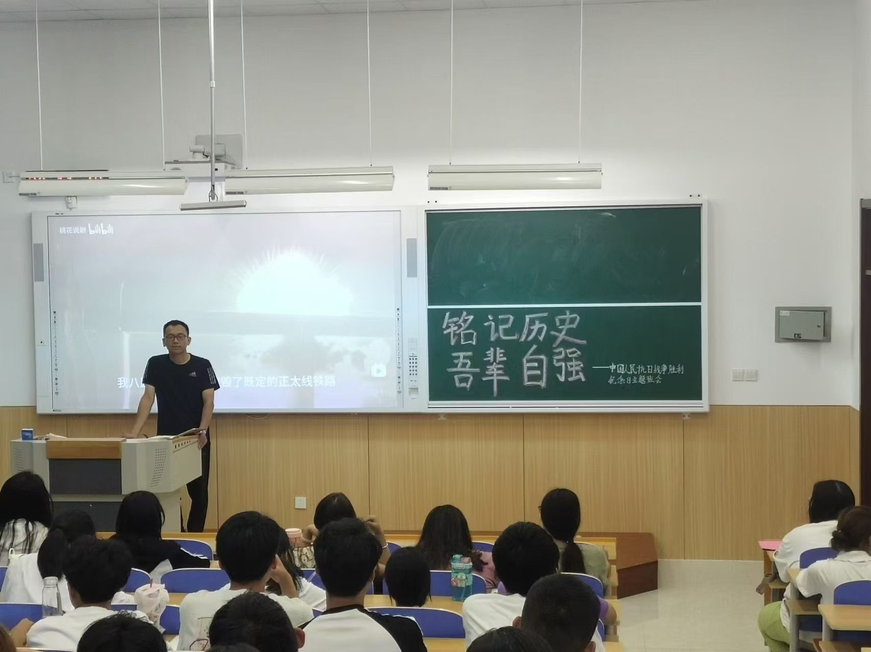 各班级精心组织,学生积极参与,通过播放历史纪录片、展示抗战资料等方式,辅导员带领大家回顾了中国人民抗日战争的艰苦历程,共同回望了那段烽火连天的峥嵘岁月。从1931年的“九·一八事变”到1945年日本无条件投降,中国人民在中国共产党的领导下,与全国各族人民团结一心,进行了长达14年艰苦卓绝的斗争,最终取得了抗日战争的伟大胜利。