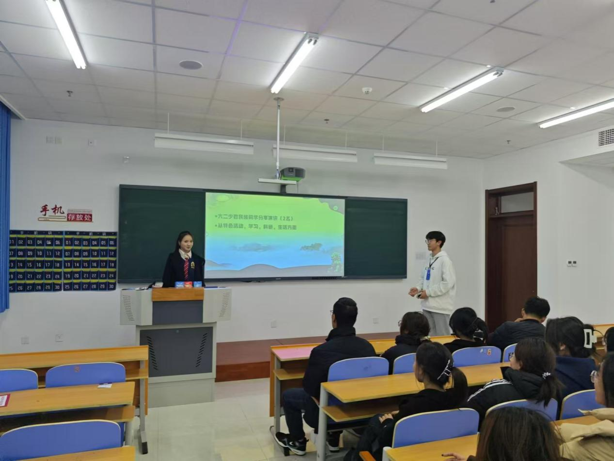 本次活动由针康系青年宣讲团组织。系里维吾尔族、回族、蒙古族、满族、壮族、畲族的同学们参与。会议伊始,宣讲团带领少数民族同学一起观看了少数民族团结新闻视频,增进了不同民族同学们对其他少数民族的了解。紧接着大二少数民族代表向大家讲述了少数民族在学校的特色活动、学习、生活等不同方面情况。最后24级维吾尔族阿卜杜热扎克.麦提库尔班、蒙古族赵雪芹、维吾尔族麦迪娜依·艾合麦提同学作为代表发言,讲述了对“民族团结百年路,启航进步新征程”理念的见解,以及中医在少数民族地区的发展与应用。