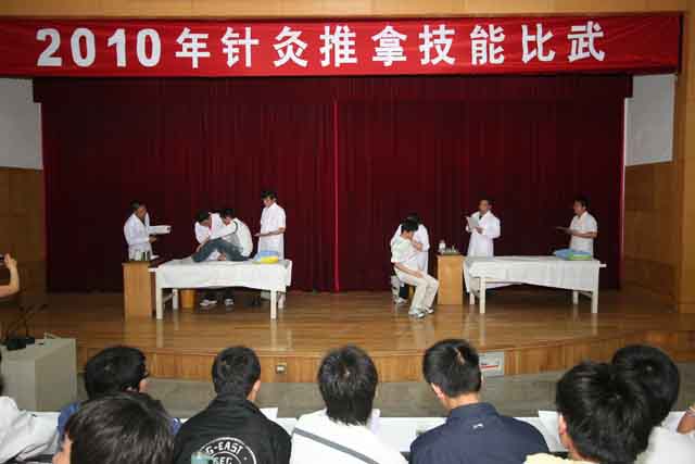 为了活跃学校学习氛围,进一步调动同学们的学习积极性,提高学生的实践动手能力,表彰学习优秀的班级和同学,由针推康保系主办的2010年针灸推拿技能比武于5月29日上午在莱阳校区学术厅举办。