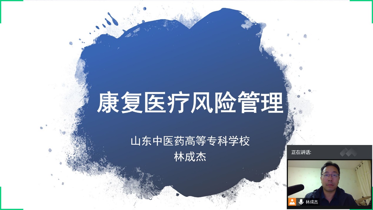 11月14日,康复治疗技术专业通过腾讯会议开展了康复医疗风险管理学术讲座。林成杰教授从风险的识别、风险的评估、风险的处理、康复医疗易发风险的原因、康复医疗中常见的风险及处理措施、作为康复治疗技术专业学生应如何防范医疗等方面与学生进行了交流。