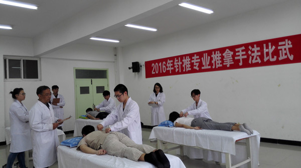 5月10日下午课外活动时间,2014级针推专业24名在初赛中胜出的选手在2号实验楼506参加了由我系推拿教研室承办的2016年针灸推拿专业推拿手法比武决赛。针推专业负责人吕美珍教授全程观摩了本次比武。