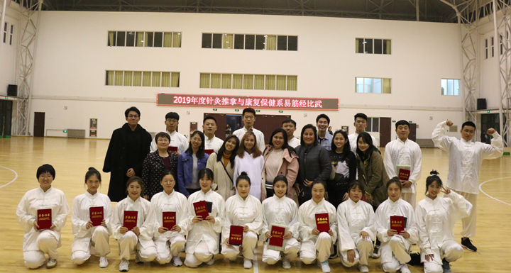 金秋十月,针康系在校体育馆举办了2019年度易筋经比赛。今年赛场上来了几位从菲律宾远道而来的客人,他们来自远东大学,来我校短期进修中医,听闻有健身气功比赛,兴致勃勃的前来观看,为比赛增添了几分趣味。