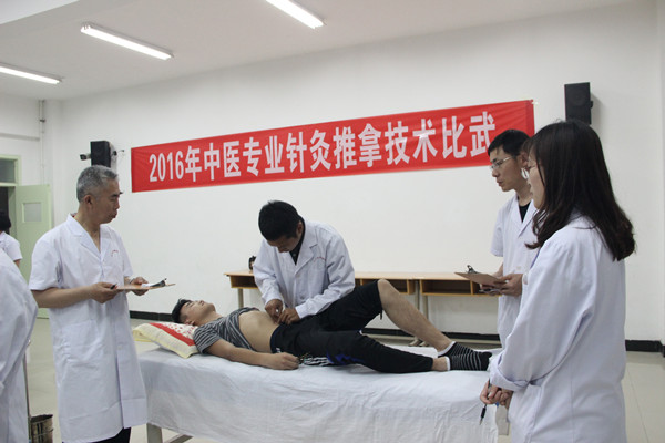 6月3日晚自习,针康系在2号实验楼506实训室举行了中医专业针灸推拿技术比武,中医专业2014级14个班共42名选手参赛,针康系派出辛铭金教授领衔的针灸推拿专业教师担任裁判,专业负责人吕美珍副主任全程观摩。比武中,选手们展示出了的良好的精神风貌和技术水平,各个方面相比前几年均有了较为明显的提高,彰显了名校建设以来,专业建设“以学生为本,抓内涵,提质量,一切为了学生,为了学生学业”的建设成效。最终,于忠媛、李其增获得针刺组个人一等奖,纪墨迟、周国团、胡本禄获得推拿、拔罐组一等奖,2014级中医4班夺得团体一等奖。