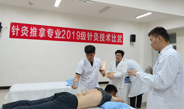 本次比武由针灸教研室承办,包括“毫针刺法”和“拔罐法”两个项目,注重专业技能和职业素养的综合考核。评分标准采用了中医执业助理医师考核的相关职业标准,参赛选手为2019级针推专业9个班的全体学生,分初赛和决赛两个阶段。赛事初赛在各班分别进行,从初赛中选拔出的24名选手参加了今天的决赛。决赛组织井井有条,各位选手沉着应赛,评委老师公正评分,最终评选出一等奖2名,二等奖6名,三等奖10名。赛后,针灸教研室辛铭金主任、实验教研室景政主任分别就毫针刺法和拔罐法结合职业标准进行了点评和示教。