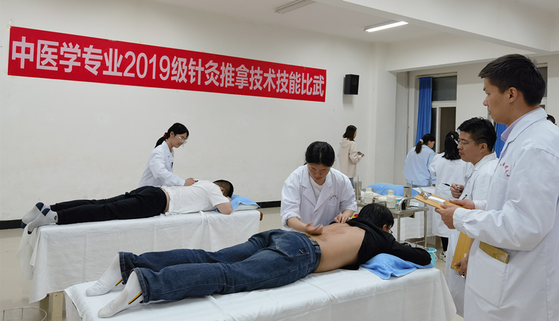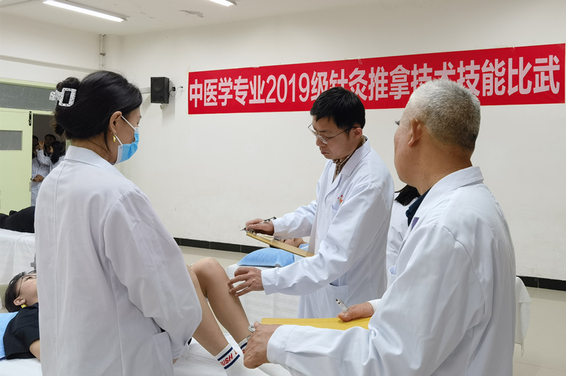 为更全面评估课程标准对接职业标准的效果,促进中医学专业学生针灸推拿技能和职业素养的养成,提升实践能力。5月19日,针康系举行中医学专业2019级针灸推拿技术技能比武。