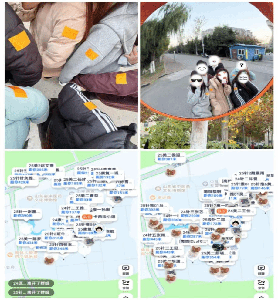 本次活动以“猫捉老鼠”趣味追逐游戏为载体,融合体育锻炼、团队协作与心理调适,引导学生在轻松愉悦的氛围中释放压力、增强体魄、涵养积极心态。活动现场,参与者通过抽签方式随机分为“猫”“鼠”两队,并佩戴橙色与蓝色身份贴纸予以区分。身份确认后,同学们迅速进入角色:“猫”队成员精神饱满、蓄势待发,展现出主动进取的姿态;“鼠”队同学则积极商讨策略,灵活规划行动路线,体现出良好的应变能力与协作意识。随着主持人宣布活动开始,校园内顿时充满青春活力。“猫”队成员迅速展开“追捕”,步伐矫健、动作敏捷;“鼠”队则巧妙利用教学楼、林荫道等校园环境进行迂回躲闪,现场气氛紧张而热烈。奔跑、躲藏、协作、欢笑交织成一幅生动的校园青春图景。高德地图APP实时显示的距离数据更添竞技趣味。