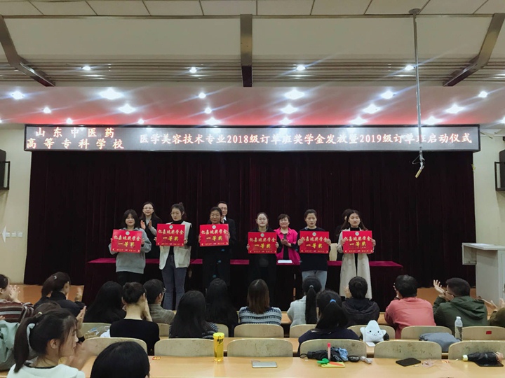 11月23日,针康系医学美容技术专业在教学楼102学术报告厅隆重举行了2018级订单班奖学金发放暨2019级订单班启动仪式。针康系吕美珍主任、医学美容技术专业负责人申芳芳和容大生物科技有限公司人力资源总监文冬梅、青岛亿嘉琏集团人力资源总监吴岩周出席本仪式。