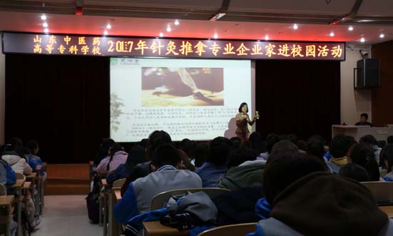 同时,针康系还先后在102学术厅为2016级针灸推拿专业在校生举行了2017年针灸推拿专业“6+3”实习模式宣讲会和企业家进校园活动。